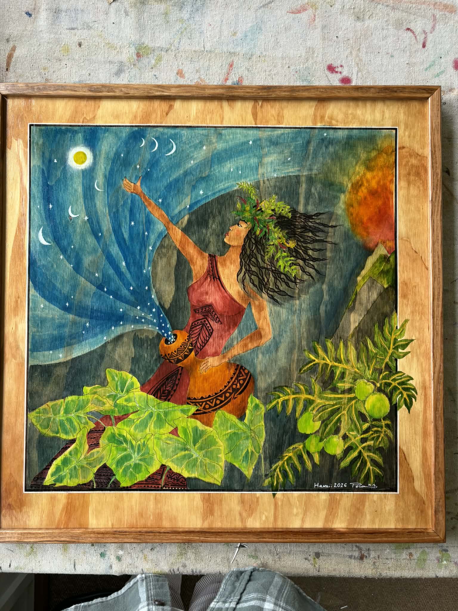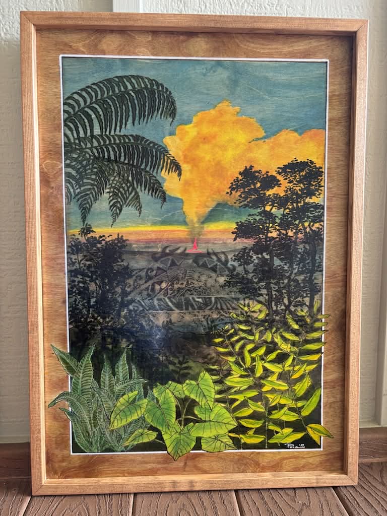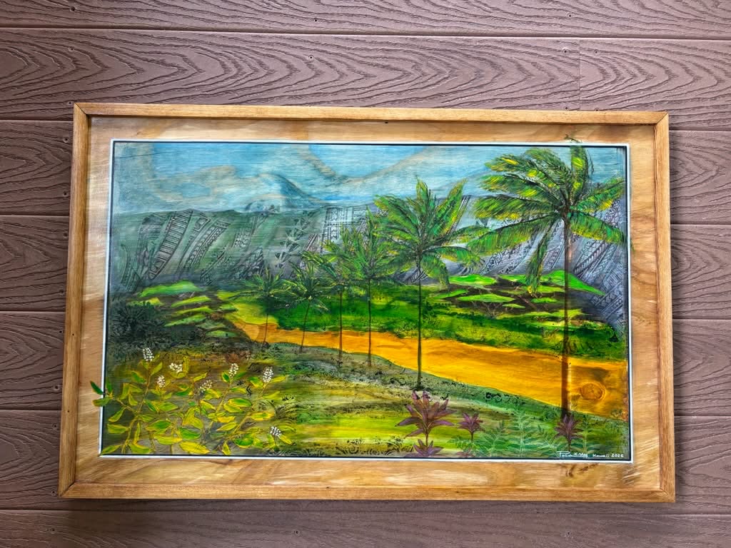 Watercolor paintings on wood using a unique self-developed technique, inspired by Hawaiian culture—its nature, customs, and mythology.